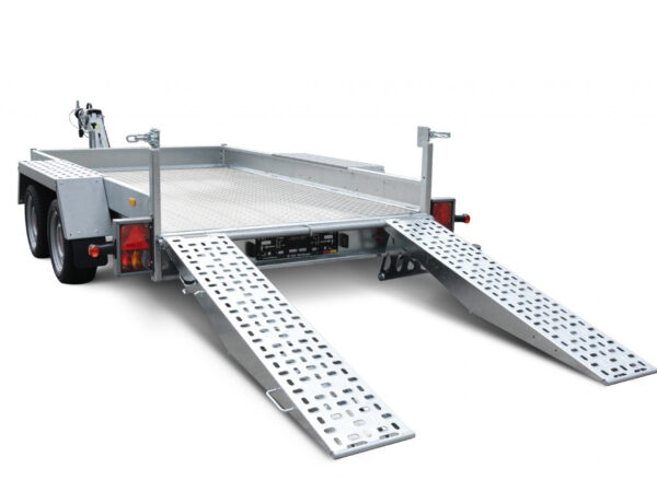 Der STEMA BMAT O2 27-30-14.2 ist ein kompakter, universell einsetzbarer Baumaschinentransporter, ideal für den gewerblichen Einsatz. Dank der stabilen Auffahrrampen mit extrem niedrigem Auffahrwinkel (18°) lassen sich Baumaschinen und Arbeitsgeräte mühelos verladen.
