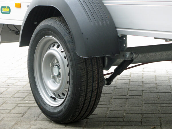 - Rutschhemmende und wasserfeste Siebdruckplatte (15 mm, durchgehend ohne Stoß) als Ladefläche